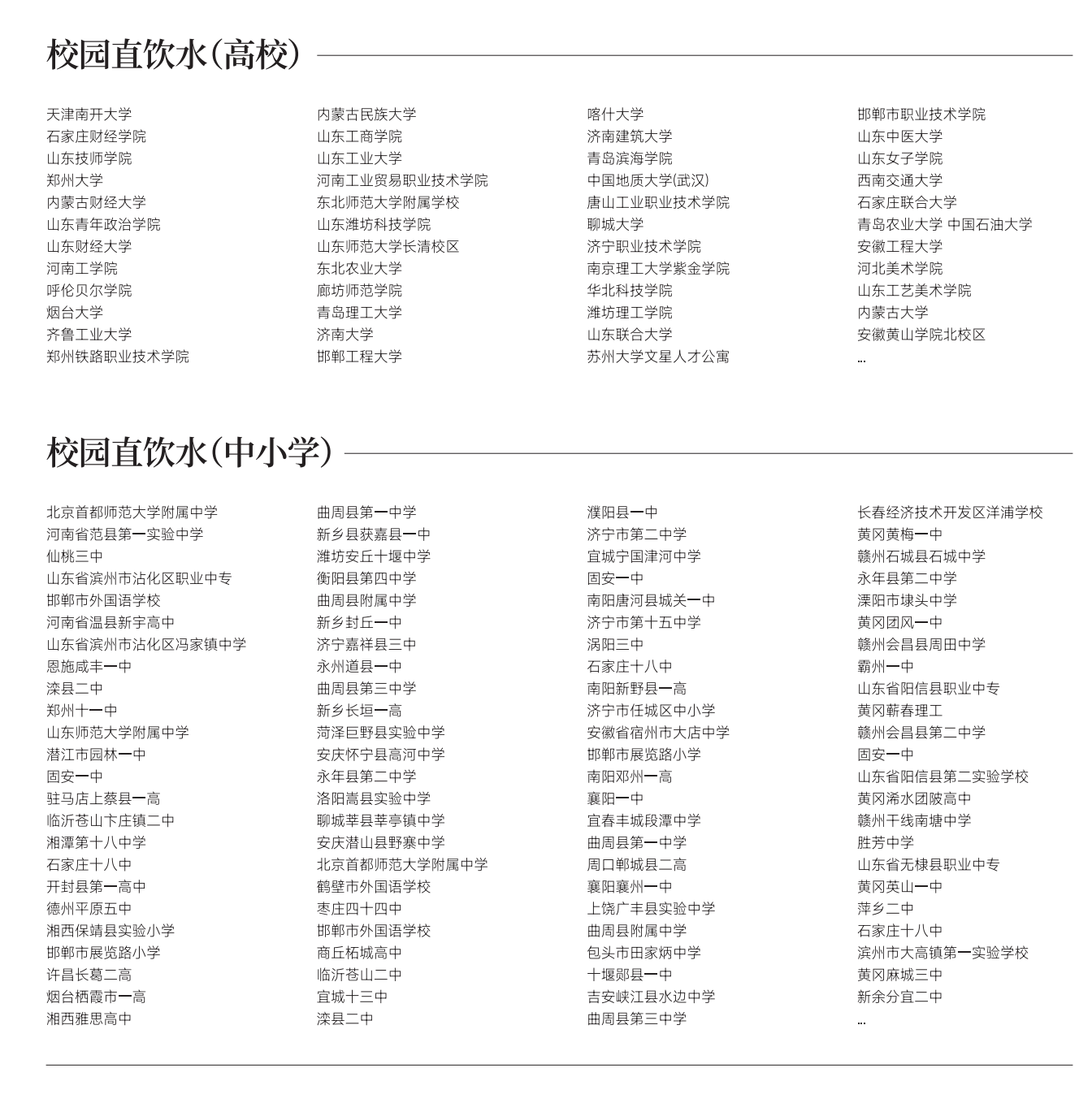 柯林普尔校园直饮水设备经过石英砂过滤/活性炭过滤/PP棉过滤/RO反渗透过滤/给水PP过滤/回水微孔过滤共计6级过滤,同时具有重金属过滤/产水口感调节,并通过紫外线以及臭氧自动循环杀菌,保持全管网活水循环,具有智能提醒滤芯更换功能,对运行压力/流量/电导/PH值进行监测。